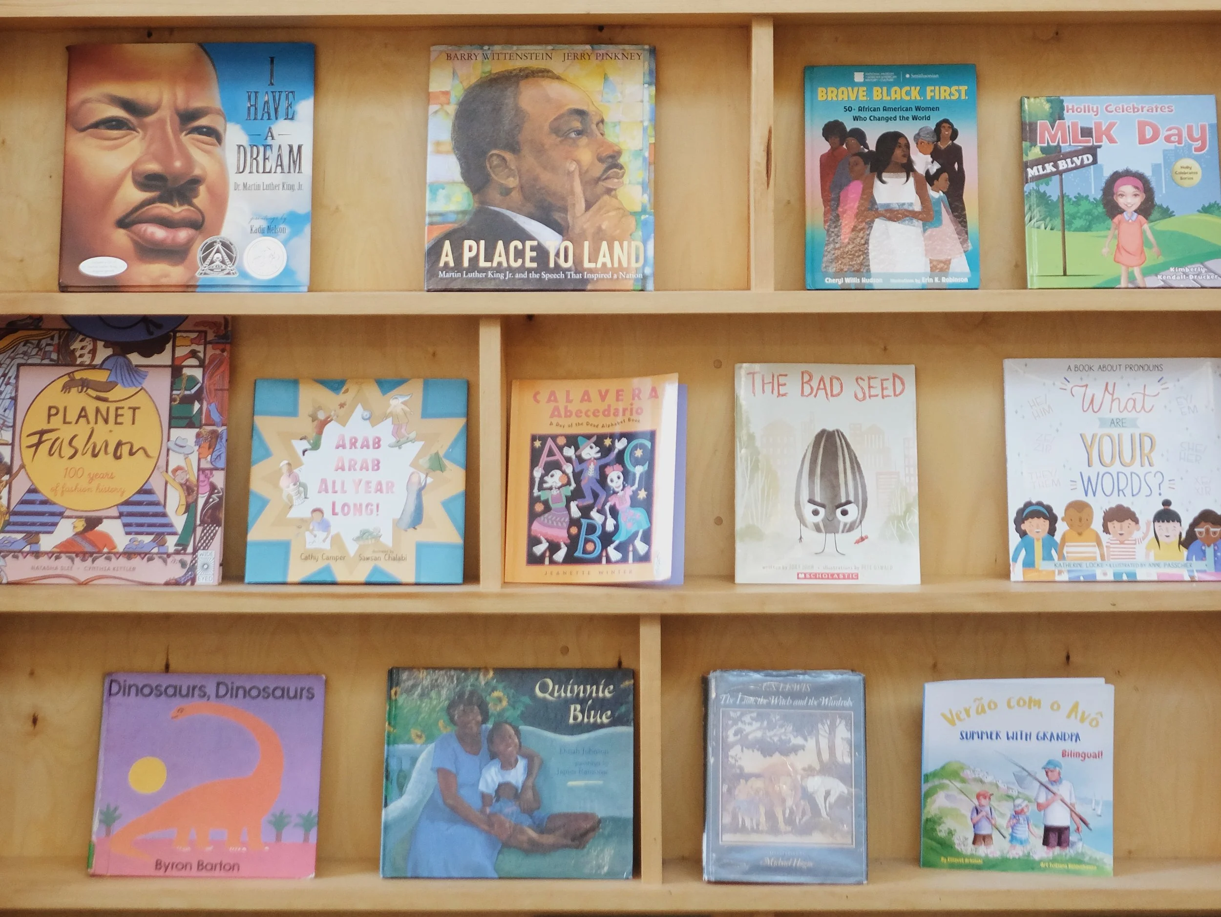 The "Celebrate" Library cart is a mobile cart that has books for 1st-4th graders and will have rotating collections, connecting with different heritage months and other themes. Teachers are able to roll the cart into the classrooms and share the curated offering with the students. Cedarwood uses its own books, but also draws from Multnomah County Library to bring a larger volume of books to students in our grades program.